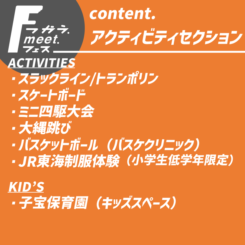 それはもう、アクティビティセクションもK点超えていく予定。シーホー三河のバスケクリニック(申込制)をはじめ、企画を充実させていきます!